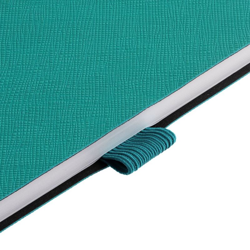 Ежедневник с гибкой обложкой, выполнен из материала Nice Touch, морская волна II, дополнен цветными ляссе и петлей-резинкой для ручки.