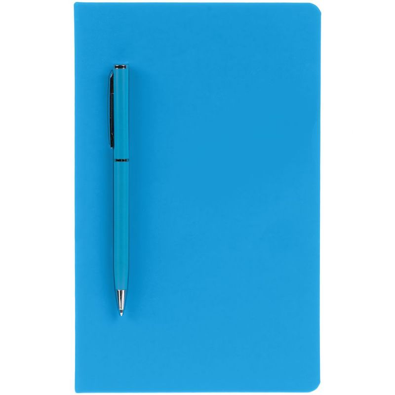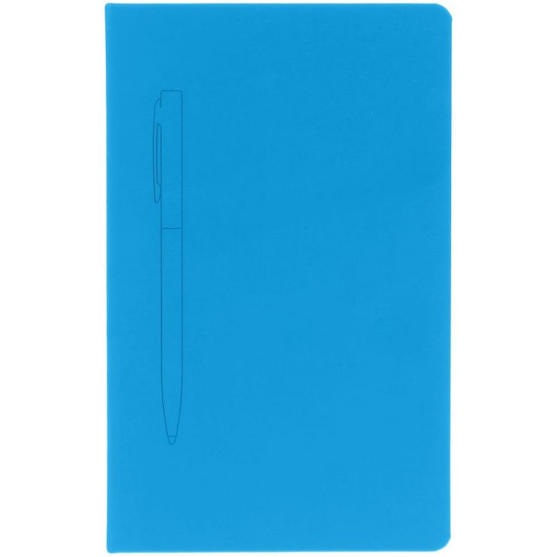 Ежедневник в твердой обложке, выполненной из материала Soft Touch Ultra, голубой JJ, дополнен атласным ляссе и магнитом, удерживающим ручку.