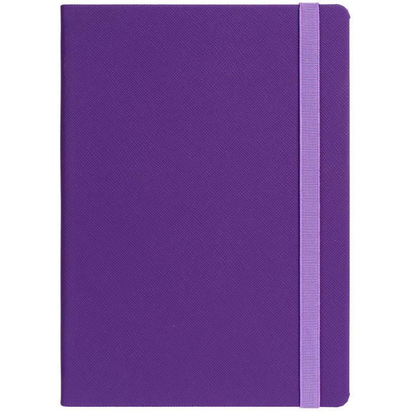 Ежедневник с твердой обложкой выполнен из материала Nice Touch, фиолетовый UU, и дополнен резинкой шириной 1 см и ляссе сиреневого цвета.