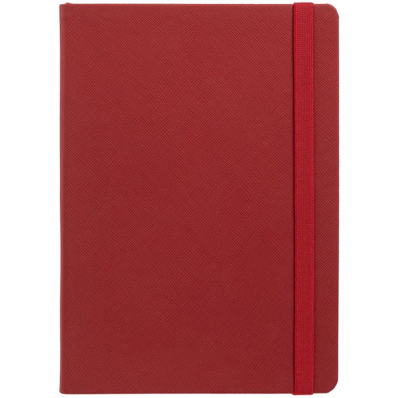 Ежедневник с твердой обложкой выполнен из материала Nice Touch, красный PP, и дополнен резинкой шириной 1 см и ляссе красного цвета.