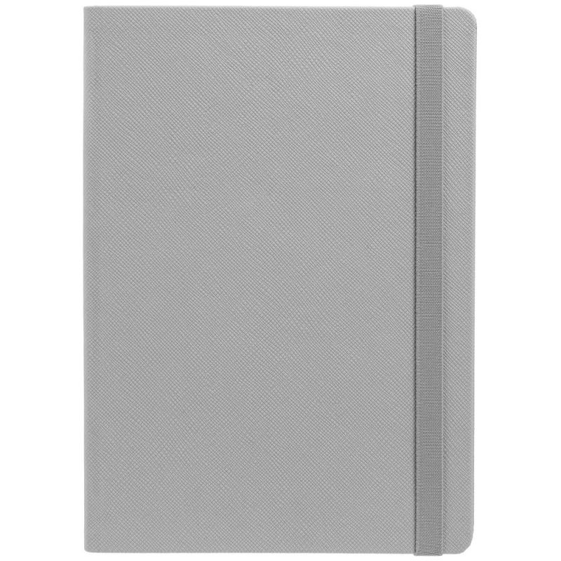 Ежедневник с твердой обложкой выполнен из материала Nice Touch, серый СС, и дополнен резинкой шириной 1 см и ляссе серого цвета.