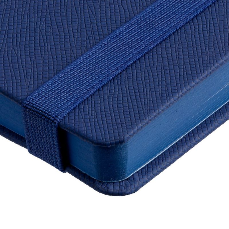 Ежедневник с твердой обложкой выполнен из материала Nice Touch, синий НН, и дополнен резинкой шириной 1 см и ляссе синего цвета.