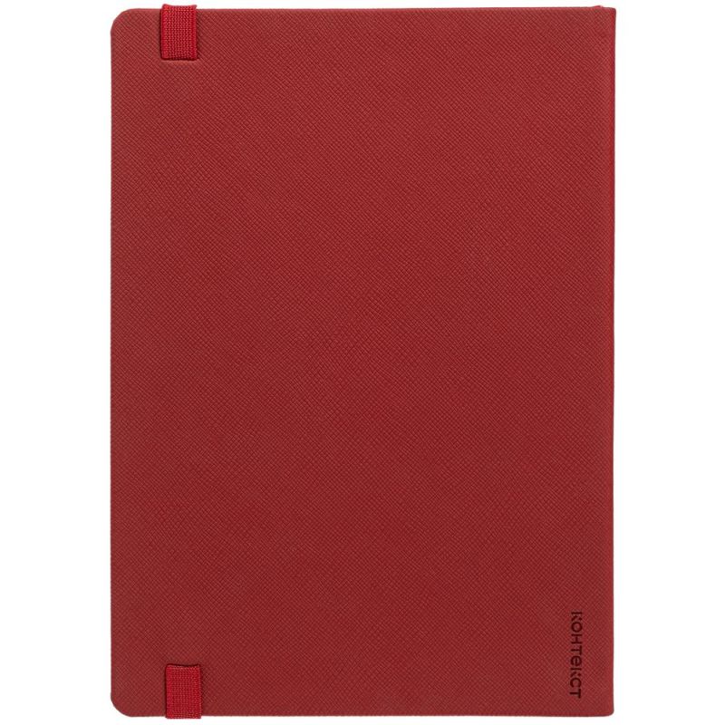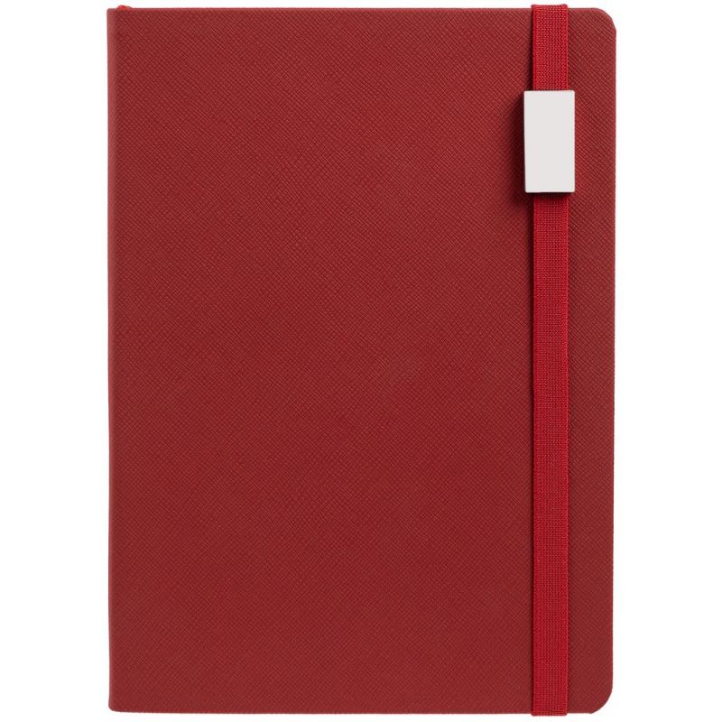 Ежедневник с полутвердойобложкой выполнен из материала Nice Touch, красный PP, и дополнен резинкой шириной 1 см с металлическим шильдом и ляссе красного цвета.