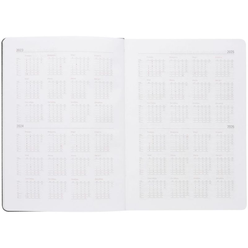 Ежедневник с твердой обложкой, выполнен из материала Latte, черный АА, обрез черного цвета, дополнен ляссе черного цвета и резинкой с металлическим шильдом.