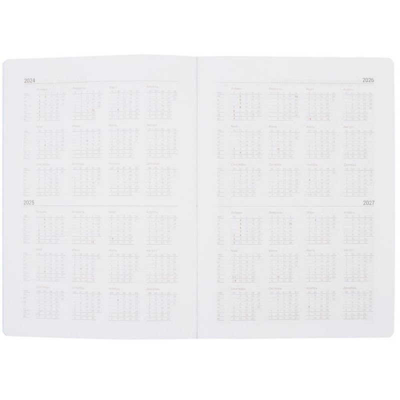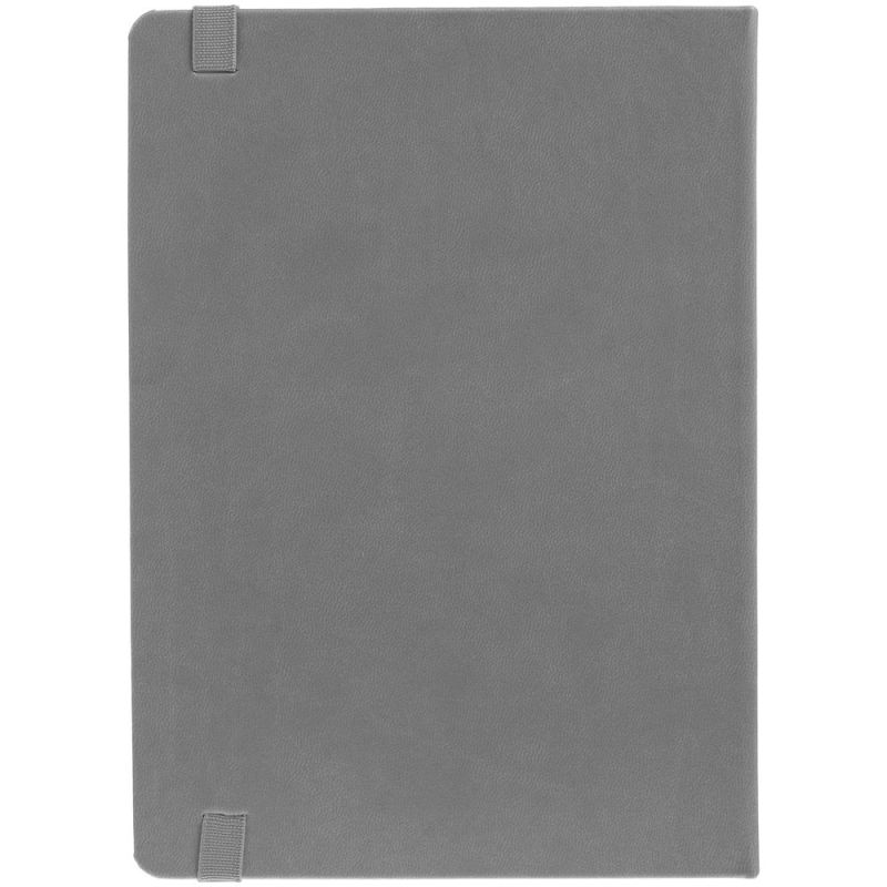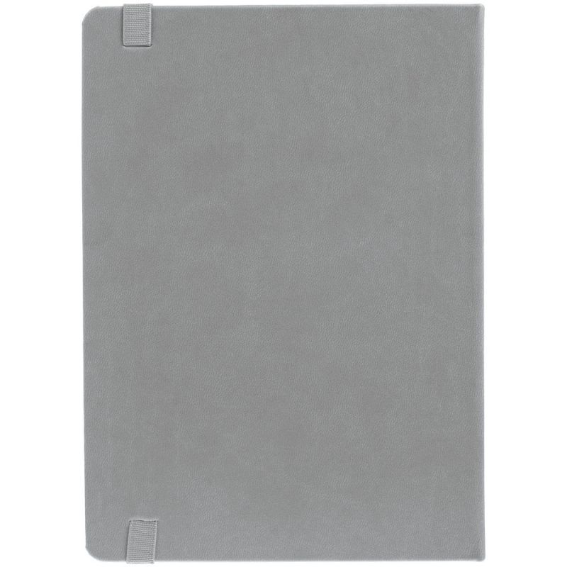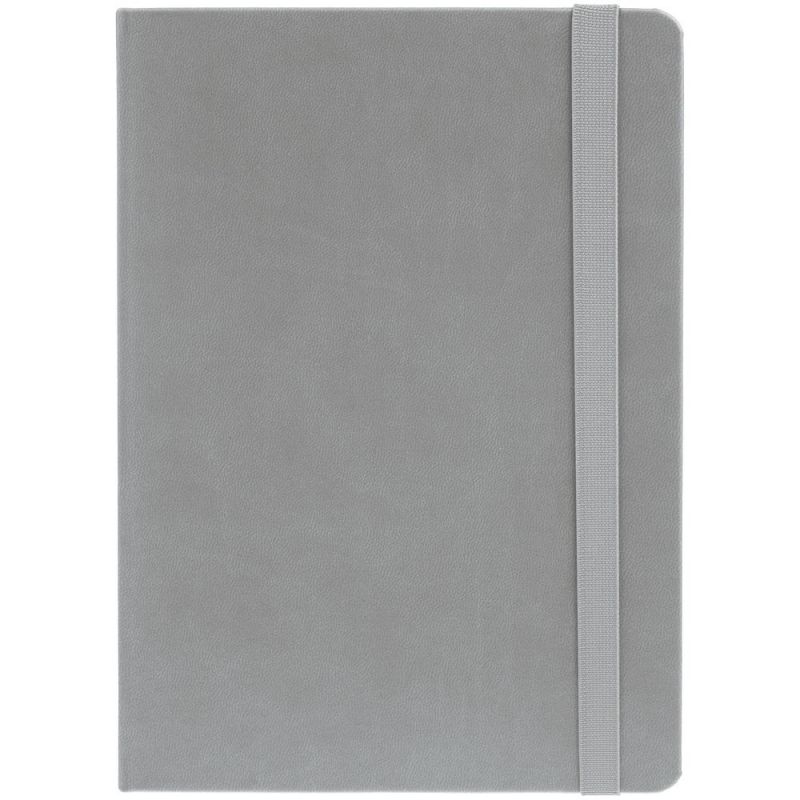 Ежедневник с твердой обложкой, выполнен из материала Latte, серый СС, обрез серого цвета, дополнен резинкой и ляссе серого цвета.