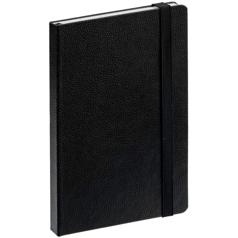 Ежедневник с твердой обложкой, выполнен из материала LaFite, черный АА, дополнен резинкой и ляссе в цвет обложки.