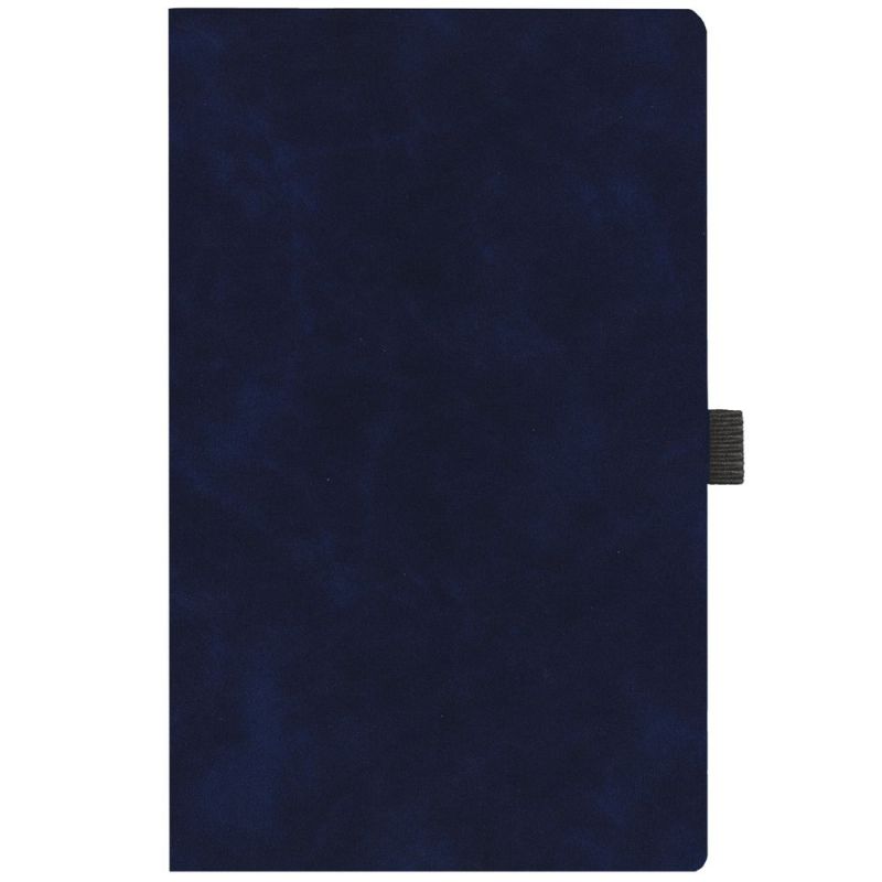 Ежедневник с гибкой обложкой, выполнен из материала Nubuck Touch, темно-синий XX, дополнен ляссе и петлей-резинкой для ручки черного цвета.