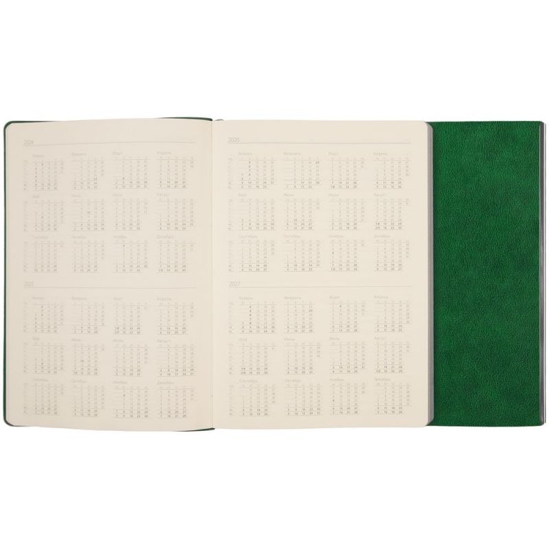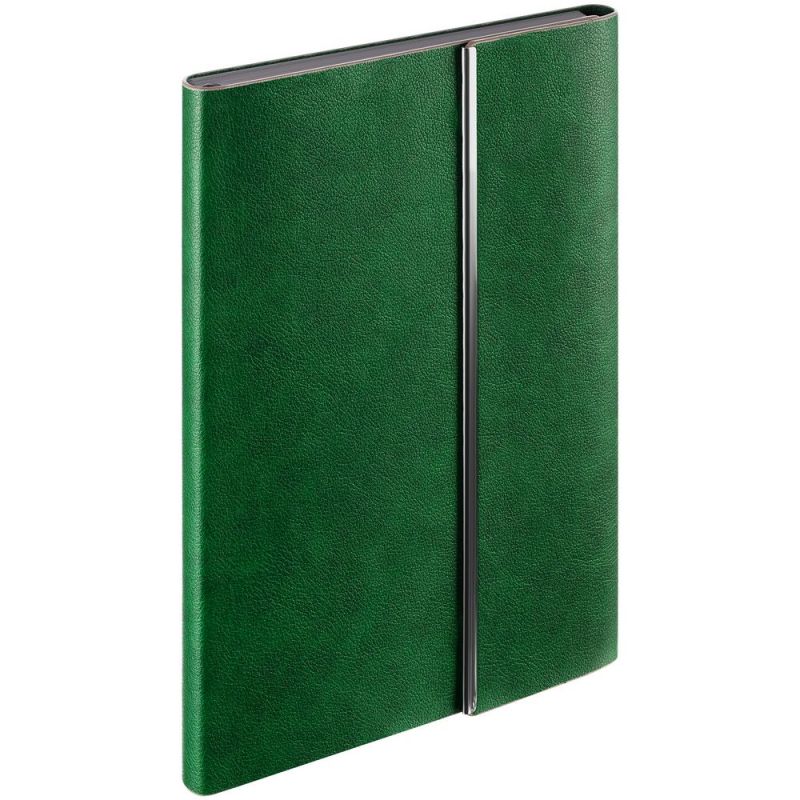 Ежедневник с гибкой обложкой, клапаном на магните и металлической отделкой клапана. Выполнен из материала Petrus, зеленый FF, дополнен серым ляссе.
