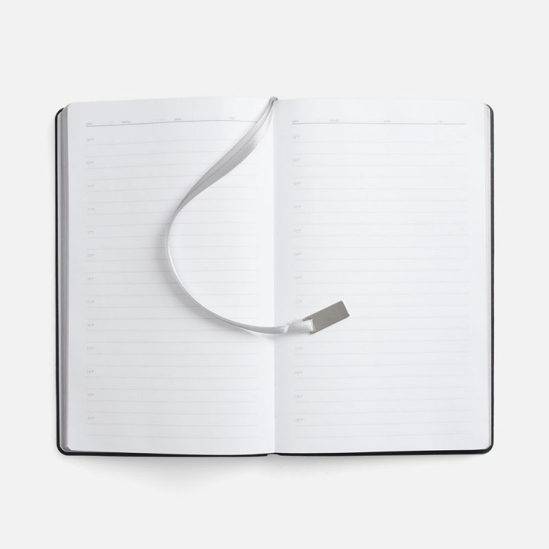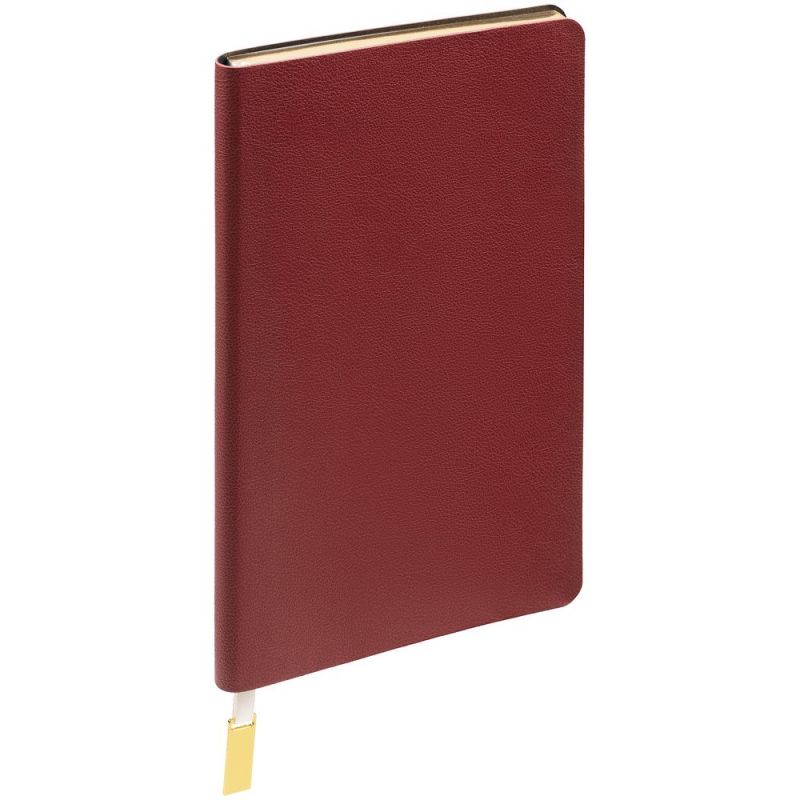 Ежедневник с гибкой обложкой, выполнен из материала Petrus, красный РР, дополнен серым ляссе с металлическим шильдиком.