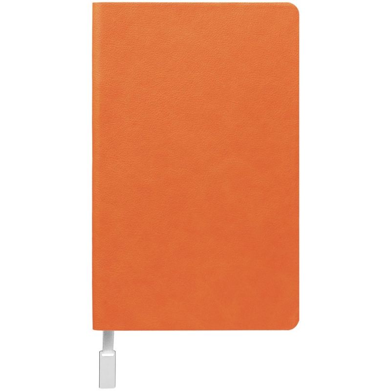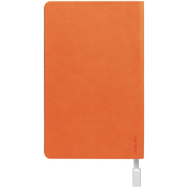 Ежедневник с гибкой обложкой, выполнен из материала Petrus, оранжевый ОО, дополнен серым ляссе с металлическим шильдиком.