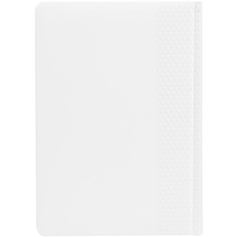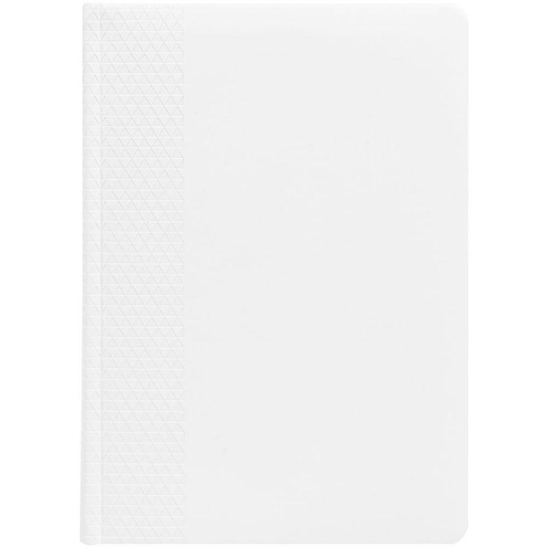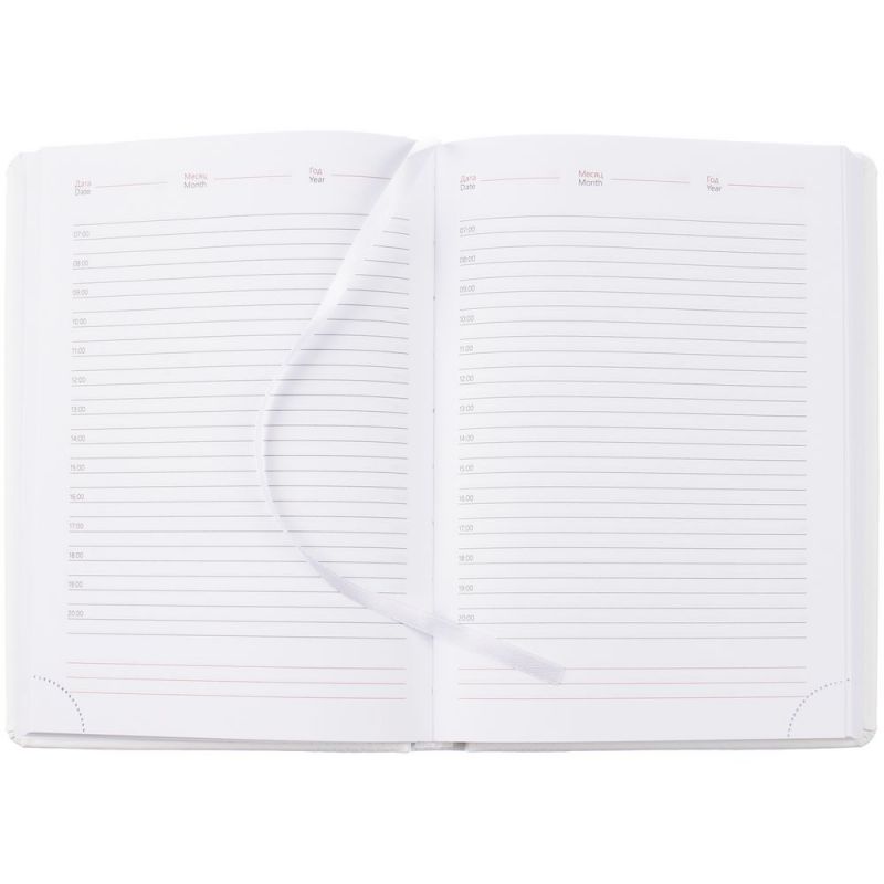 Ежедневник с твердой обложкой, выполнен из материала Waltz, белый ВВ, дополнен ляссе в цвет материала.
