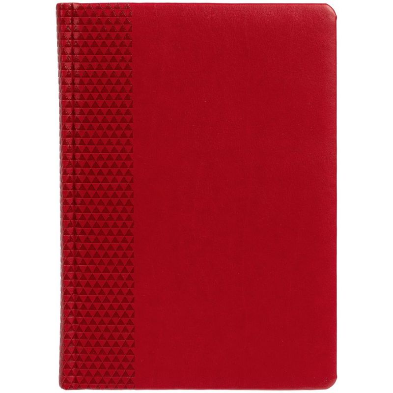 Ежедневник с твердой обложкой, выполнен из материала Waltz, красный PP, дополнен ляссе в цвет материала.