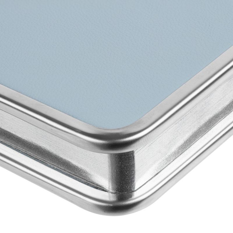 Изящный ежедневник с зауженным блоком и стильными деталями — металлической окантовкой на обложке и металлизированным обрезом.