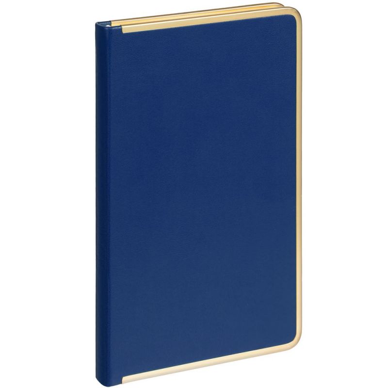 Изящный ежедневник с зауженным блоком и стильными деталями — металлической окантовкой на обложке и металлизированным обрезом.