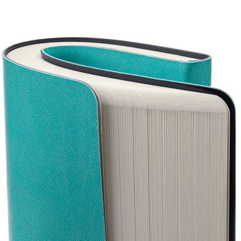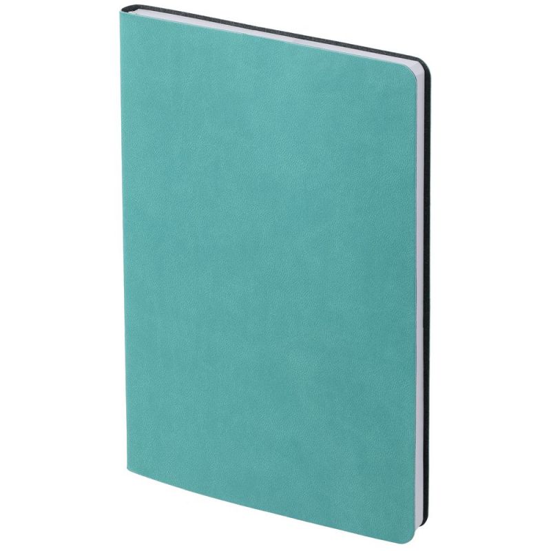 Ежедневник с гибкой обложкой, выполнен из материала Latte, бирюзовый, дополнен ляссе в цвет обложки.