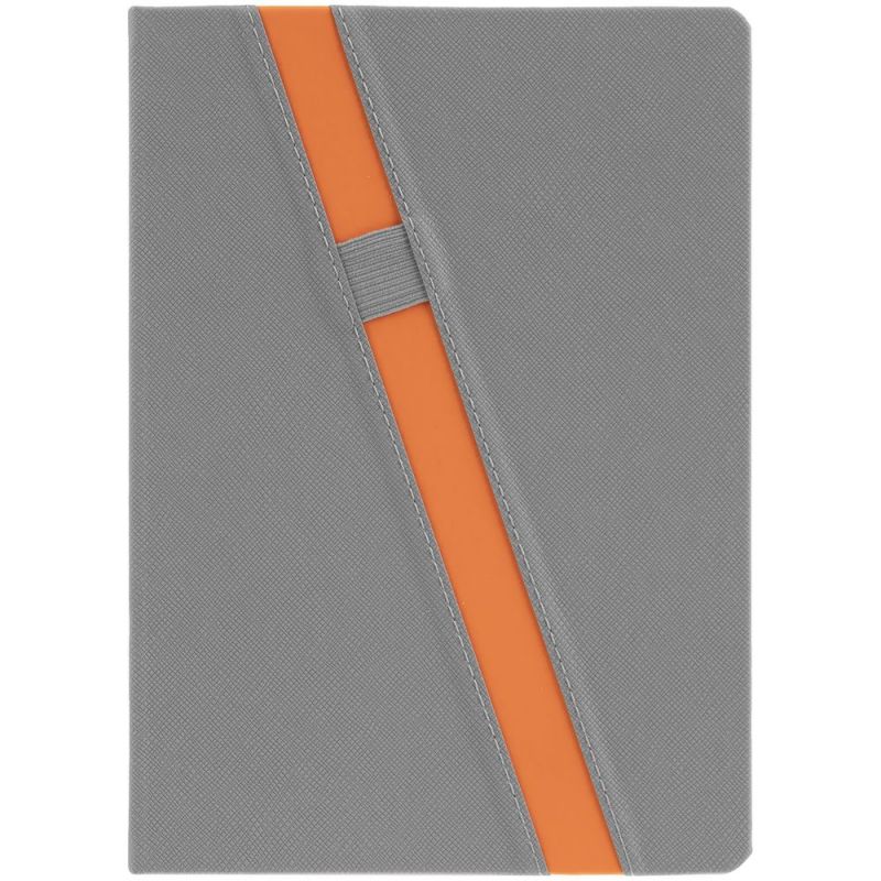 Ежедневник с твердой обложкой и тонированным обрезом. Выполнен из материала Nice Touch, серый СС, и Soft Touch, оранжевый ОО, дополнен серым ляссе.