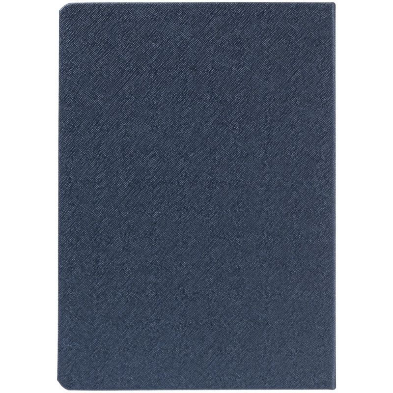 Ежедневник с твердой обложкой и серебристым обрезом, выполнен из материала Saffian, синий НН, дополнен ляссе в цвет обложки.