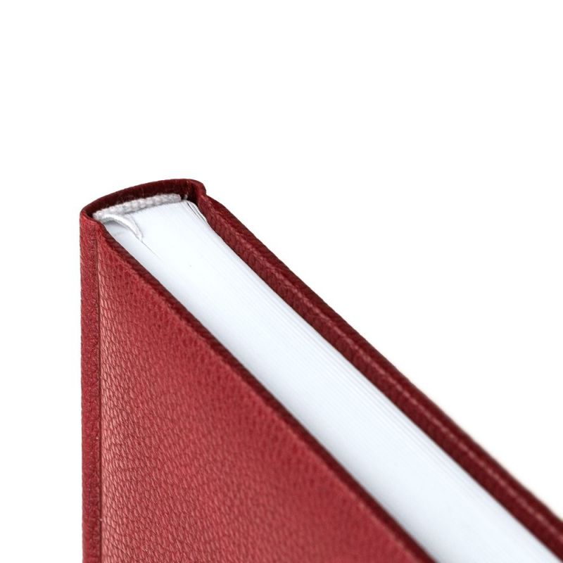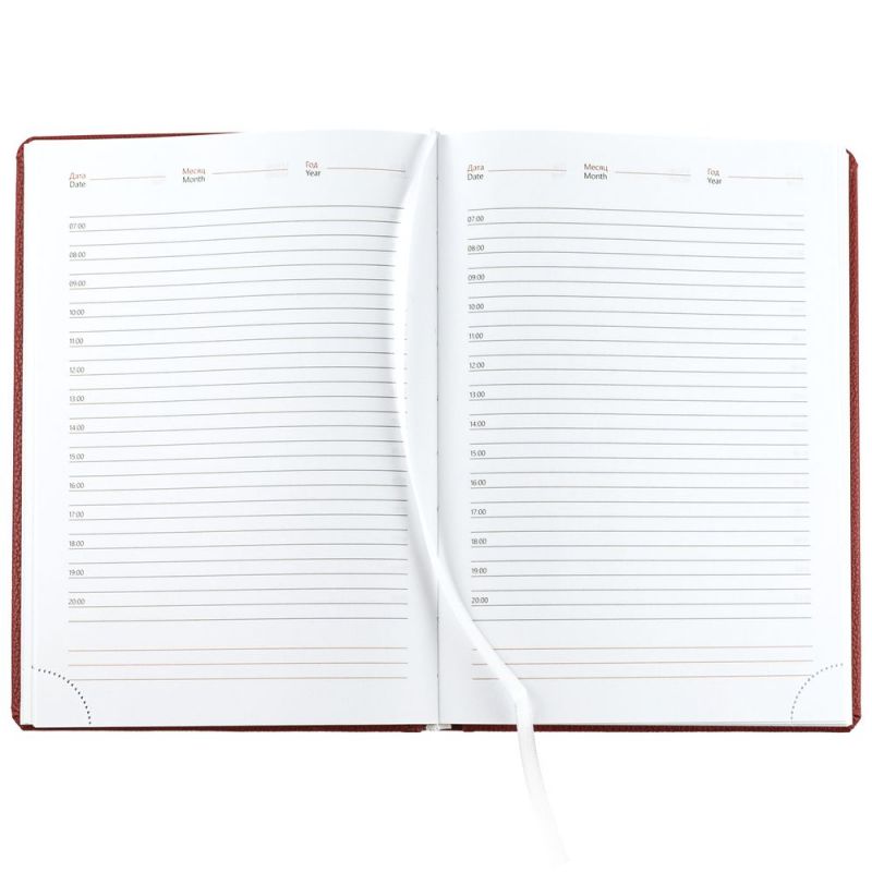 Ежедневник в твердой обложке c поролоном, выполнен из материала La Fite, красный РР, дополнен ляссе белого цвета.