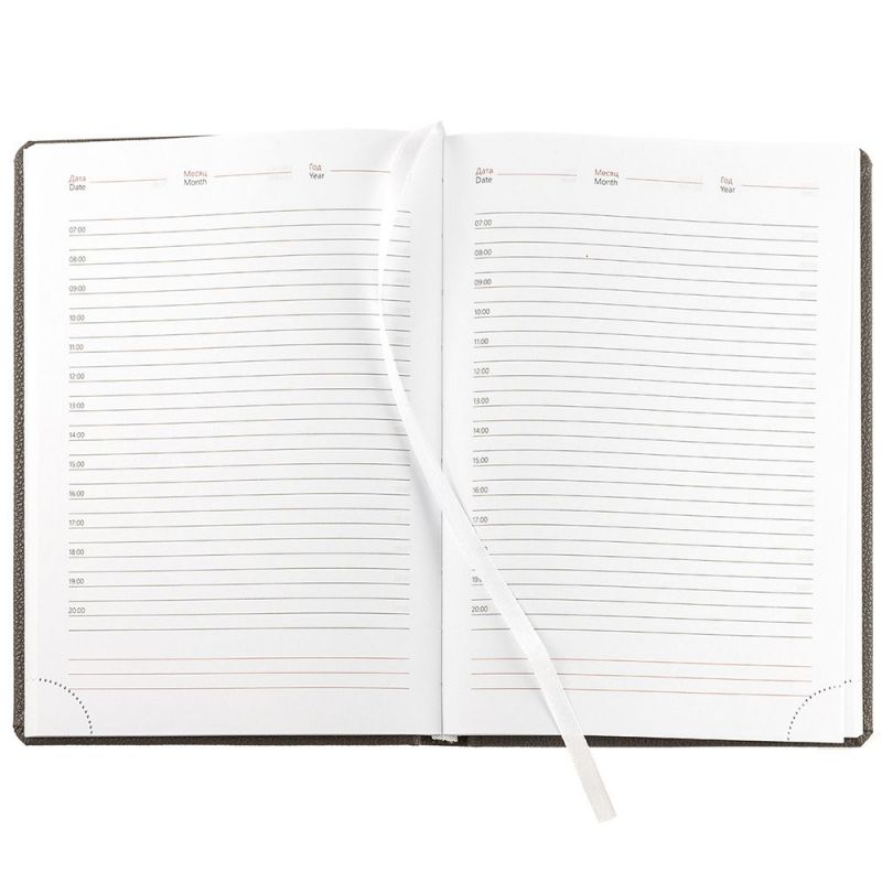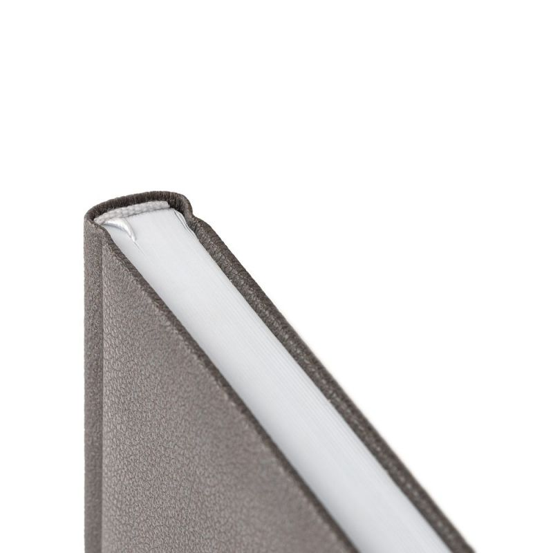 Ежедневник в твердой обложке c поролоном, выполнен из материала La Fite, темно-серый EE, дополнен ляссе белого цвета.