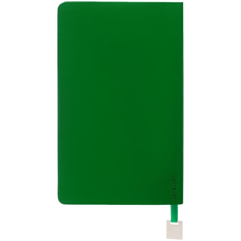 Ежедневник с гибкой обложкой, выполнен из материалов Soft Touch Ultra, зеленый FF, и Latte, зеленй (внутренняя часть обложки), дополнен ляссе в цвет обложки с металлическим шильдиком.