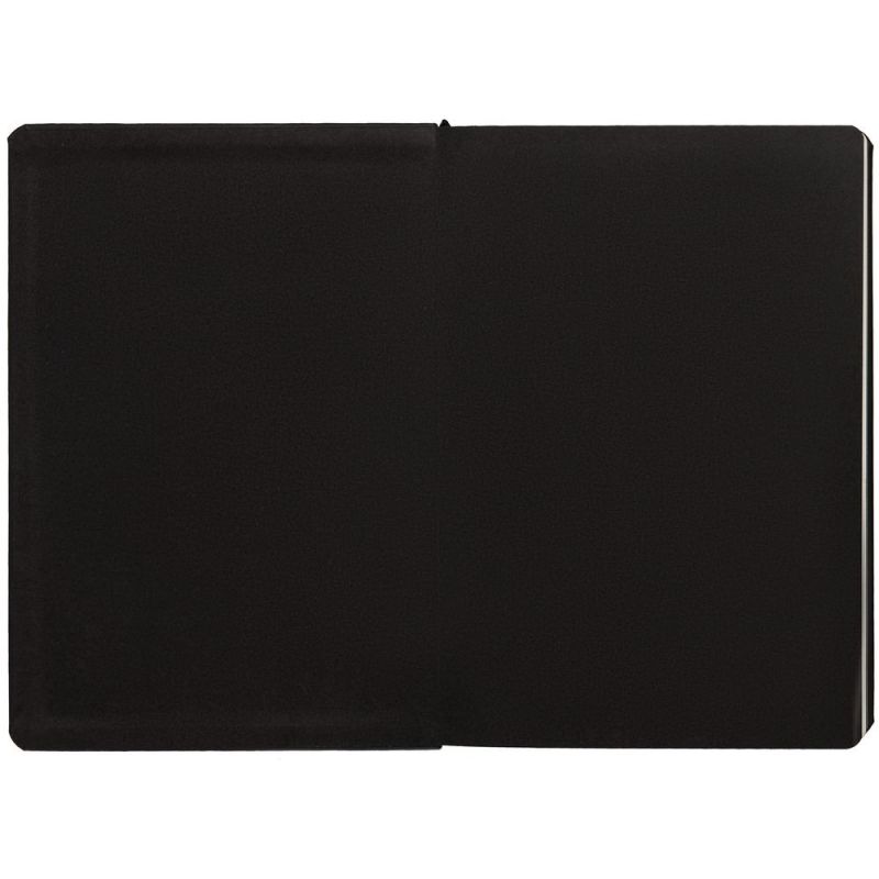 Ежедневник с твердой обложкой и тонированным обрезом, выполнен из материала Soft Touch, черный АА, дополнен ляссе в цвет обложки.