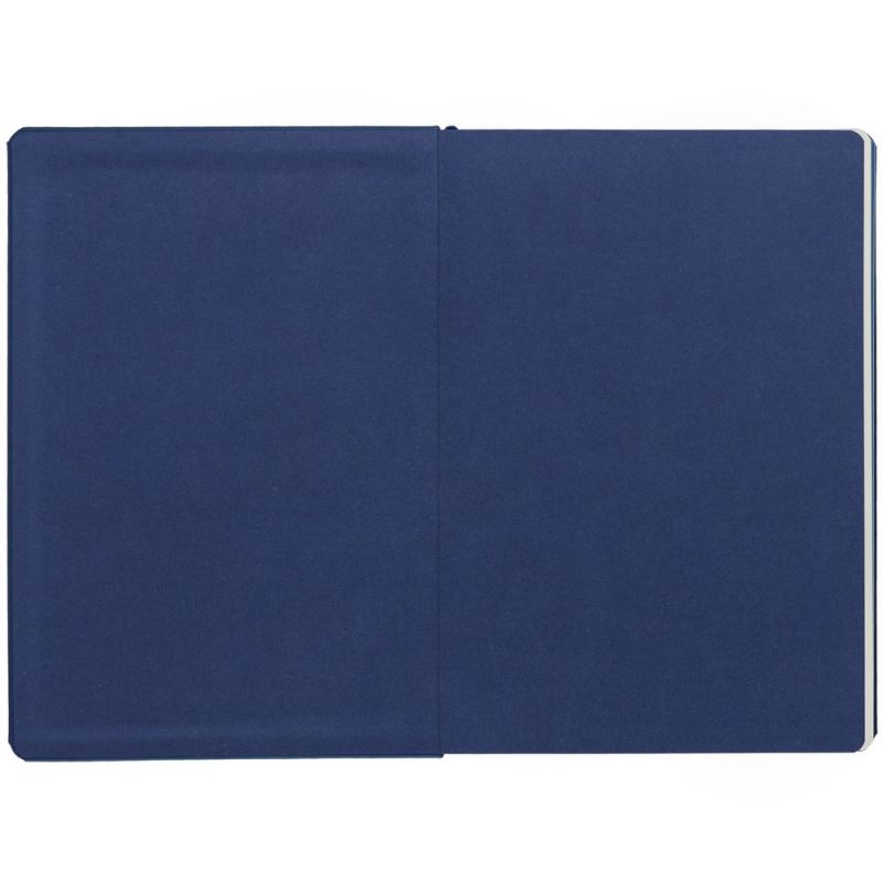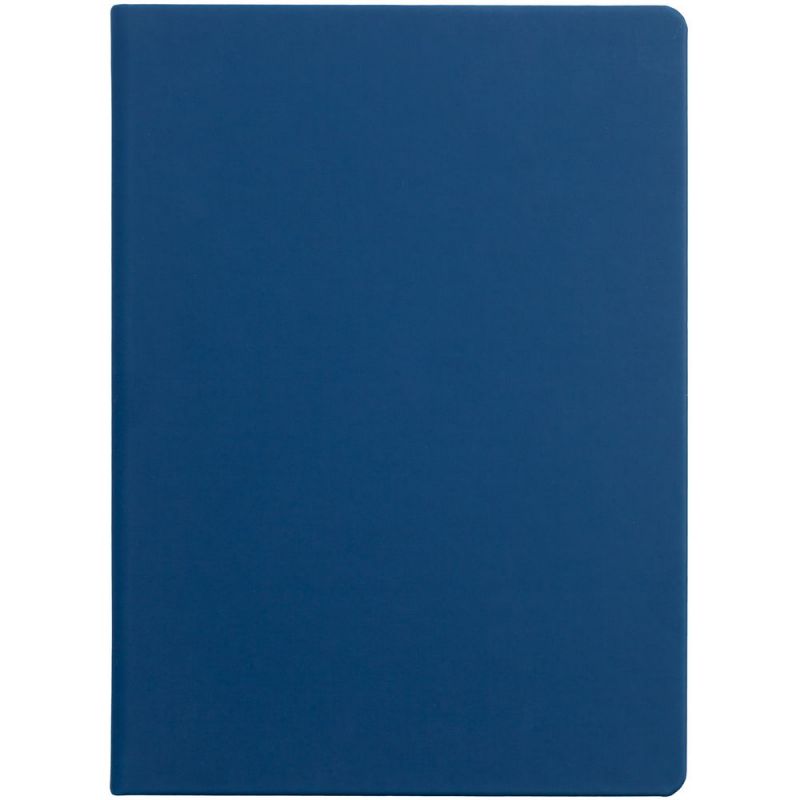 Ежедневник с твердой обложкой и тонированным обрезом, выполнен из материала Soft Touch, синий НН, дополнен ляссе в цвет обложки.