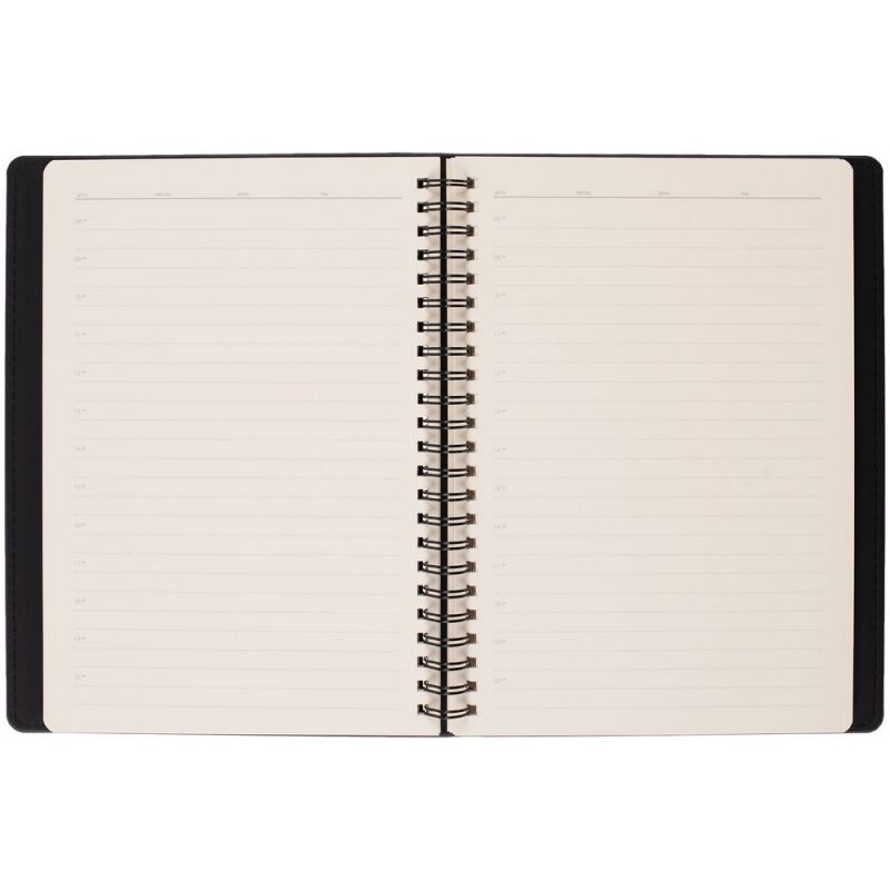 Ежедневник с блоком на пружине в твердой обложке, выполнен из материалов Nubuk Touch, черный AA и Soft Touch, черный AA.
