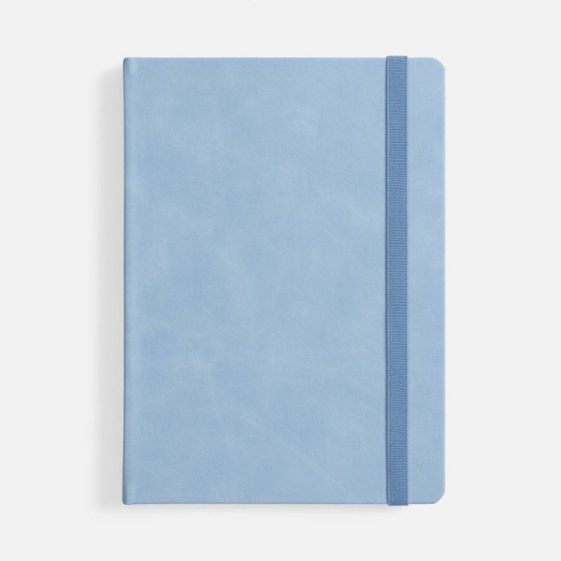 Ежедневник с твердой обложкой, выполнен из материала Nubuck Touch, голубой JJ, дополнен ляссе светло-голубого цвета.