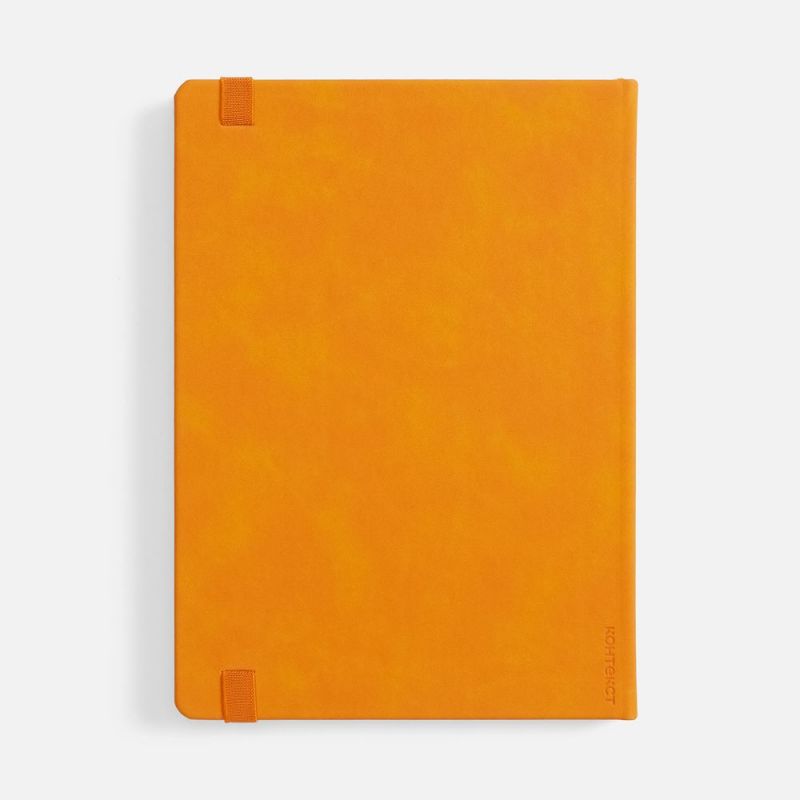 Ежедневник с твердой обложкой, выполнен из материала Nubuck Touch, оранжевый OO, дополнен ляссе в цвет обложки.