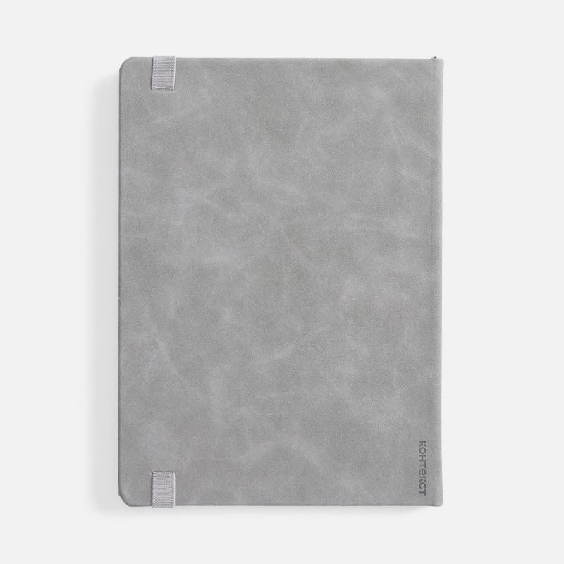 Ежедневник с твердой обложкой, выполнен из материала Nubuck Touch, серый СС, дополнен ляссе темно-серого цвета.