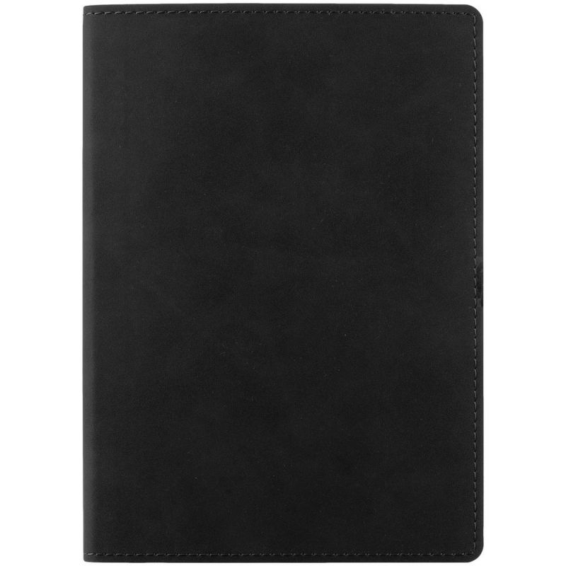 Ежедневник с гибкой обложкой, выполнен из материала Nubuck Touch, черный AA, дополнен ляссе в цвет обложки.