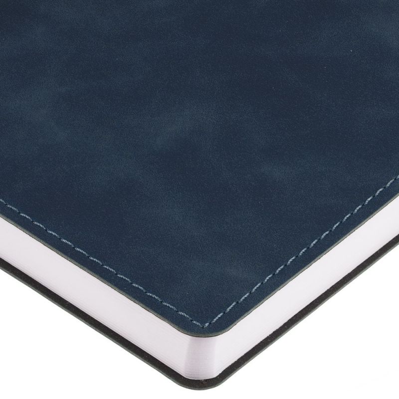 Ежедневник с гибкой обложкой, выполнен из материала Nubuck Touch, темно-синий ХХ, дополнен ляссе темно-синего цвета.