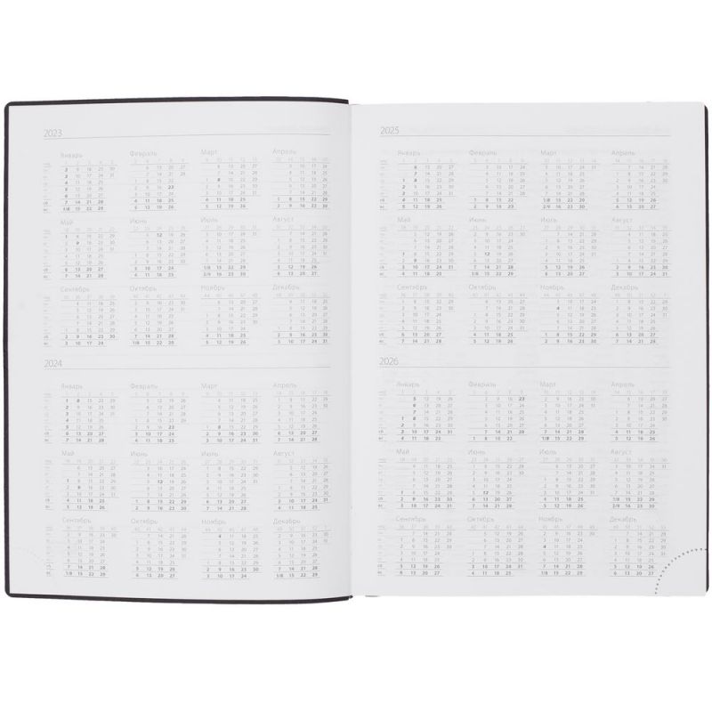 Ежедневник с гибкой обложкой выполнен из материала Brand, морская волна II, и дополнен резинкой шириной 1 см, капталом и ляссе в цвет обложки.