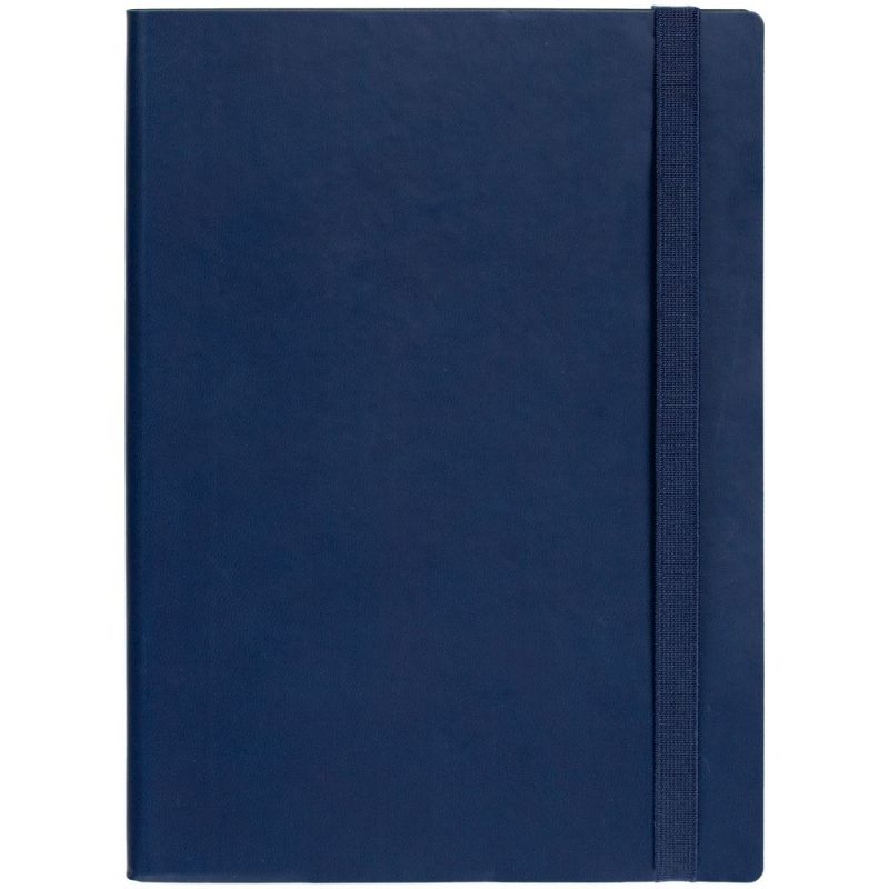 Ежедневник с гибкой обложкой, выполнен из материала Latte, темно-синий НН, дополнен резинкой шириной 1 см, капталом и ляссе темно-синего цвета.