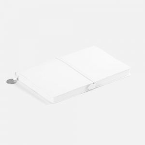 Ежедневник с гибкой обложкой, выполнен из материала Waltz, белый BB, дополнен ляссе в цвет обложки с металлическим шильдом.