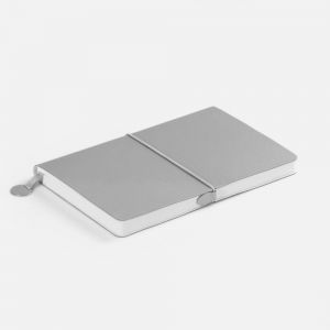 Ежедневник с гибкой обложкой, выполнен из материала Waltz, серебристый DD, дополнен ляссе в цвет обложки с металлическим шильдом.