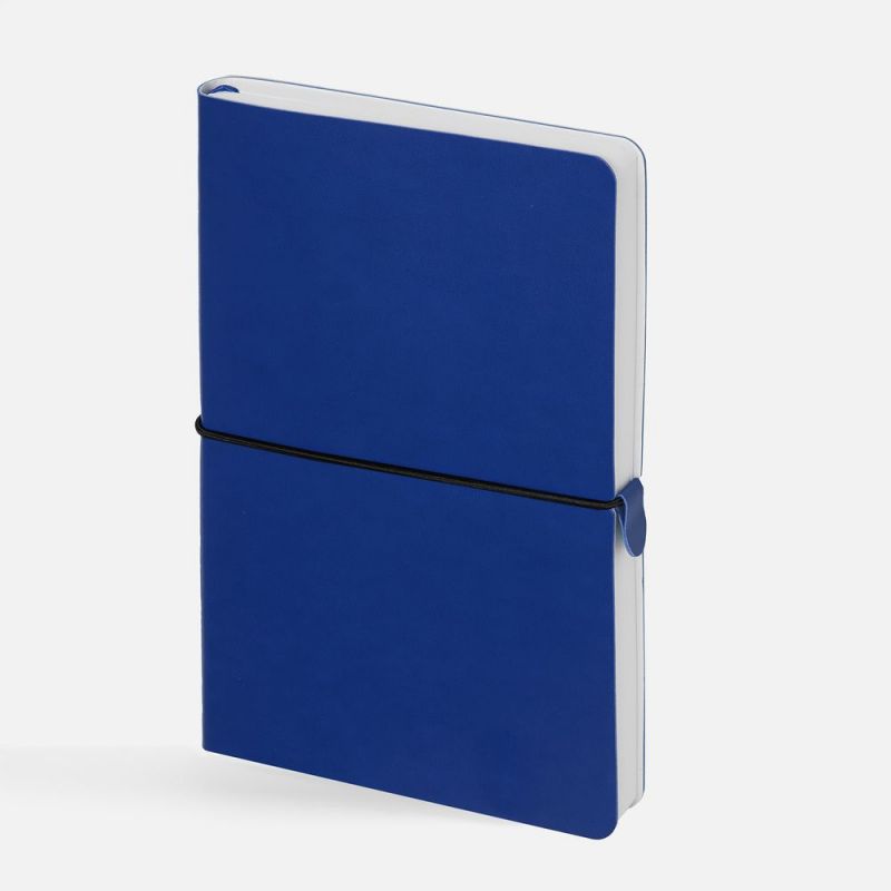 Ежедневник с гибкой обложкой, выполнен из материала Waltz, синий НН, дополнен ляссе в цвет обложки с металлическим шильдом.