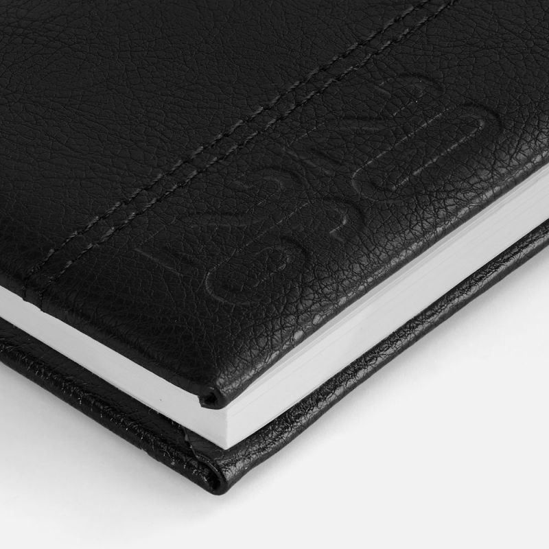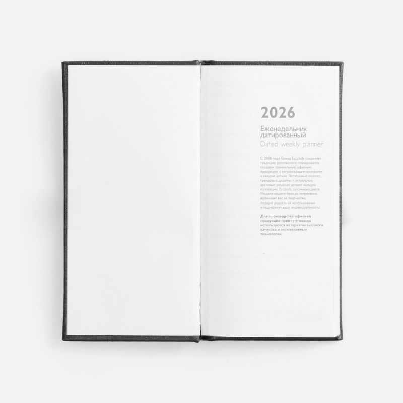 Еженедельник с твердой обложкой с поролоном из искусственной кожи, дополнен декоративной строчкой, капталом и ляссе в цвет.