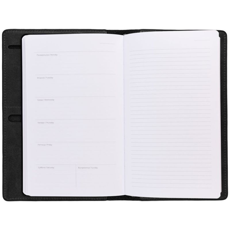 Еженедельник Remini со съемной обложкой-портфолио из натуральной кожи, репсовым ляссе и окрашенным срезом обложки в цвет материала.