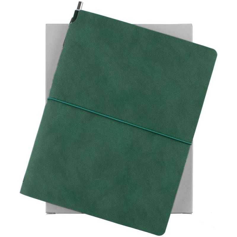 Ежедневник из искусственного материала, напоминающего замшу, и изящная ручка, которая удобно прячется за обложку ежедневника.