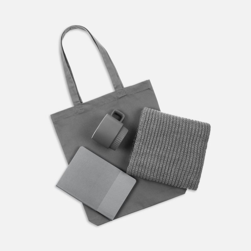 Кружка выверенной формы, сделает каждое чаепитие незабываемым. Уютный шарф с мягкой текстурой станет незаменимым аксессуаром в прохладную погоду, а ежедневник с фактурным тиснением на обложке сделает ведение записей особенным. Шопер в качестве упаковки набора делает его более современным и практичным.