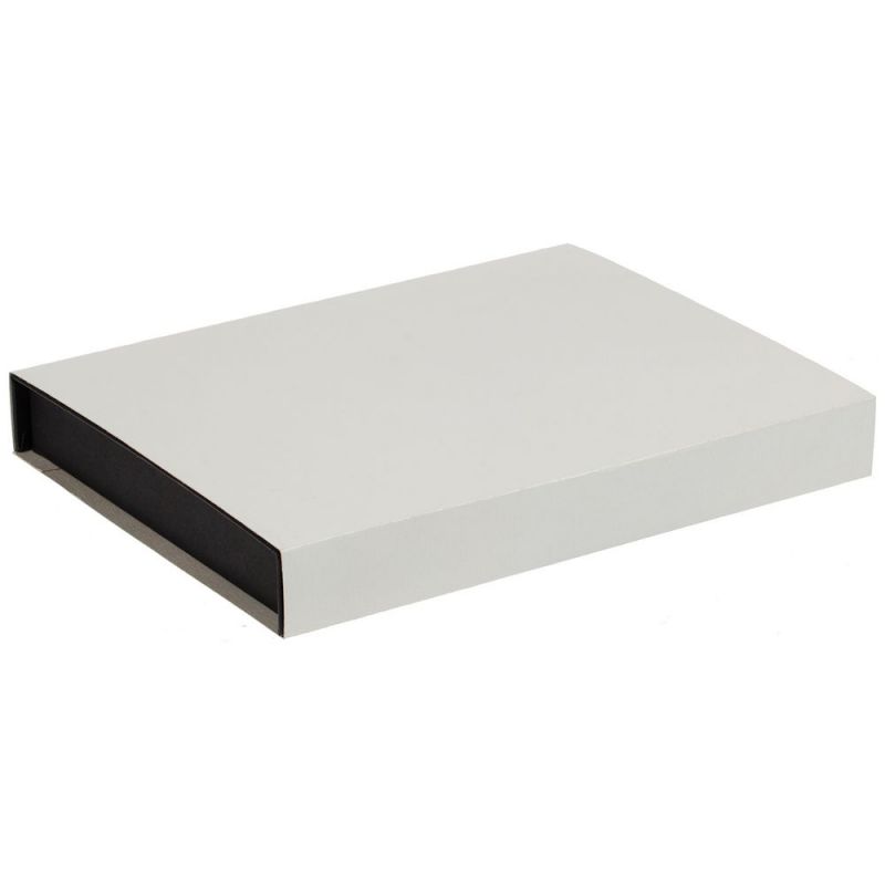 Коробка из переплетного картона, кашированного гладкой дизайнерской бумагой Magic, с крышкой на магните и флокированным ложементом.