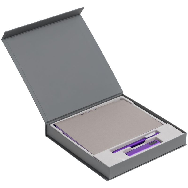 Коробка Memoria под ежедневник, аккумулятор и ручку, серая