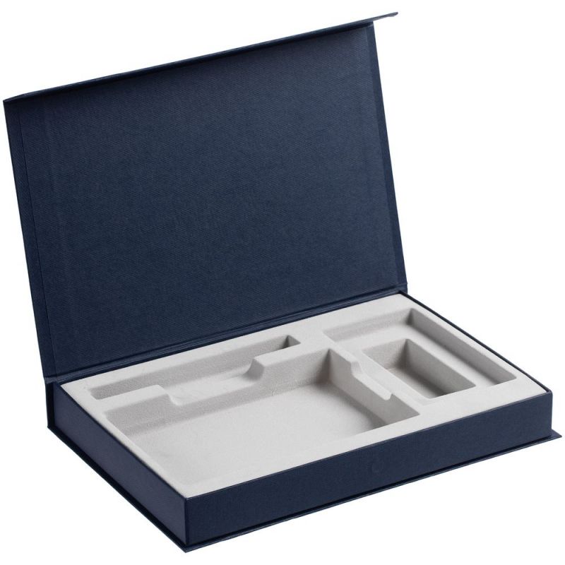 Коробка Silk с ложементом под ежедневник 10x16 см, аккумулятор и ручку, синяя