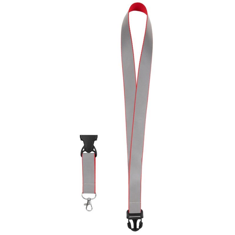Лента для бейджа или пропуска с карабином и межъярусным замком. Такой замок позволит быстро отстегнуть часть ленты, чтобы приложить интерактивный бейдж или пропуск к считывателю, не снимая ленту через голову.