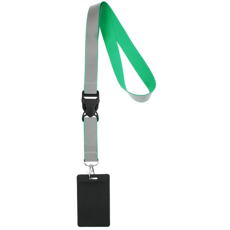 Лента для бейджа или пропуска с карабином и межъярусным замком. Такой замок позволит быстро отстегнуть часть ленты, чтобы приложить интерактивный бейдж или пропуск к считывателю, не снимая ленту через голову.