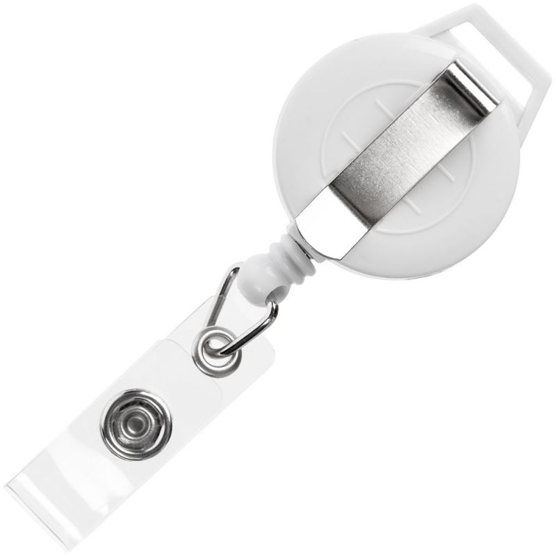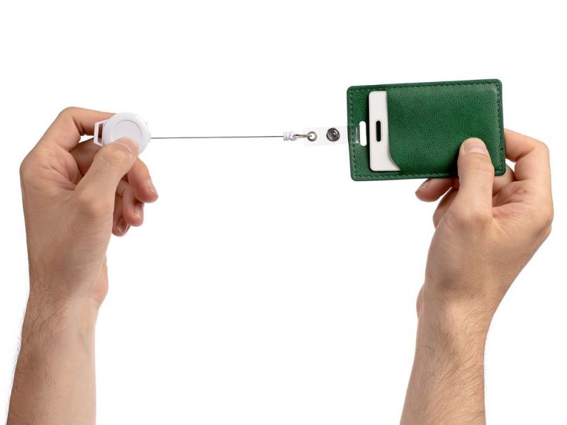 На ретрактор можно поместить бейдж, визитку или магнитную карту. В корпусе спрятан сворачивающийся шнур, который позволяет при необходимости демонстрировать содержимое держателя, не снимая его.