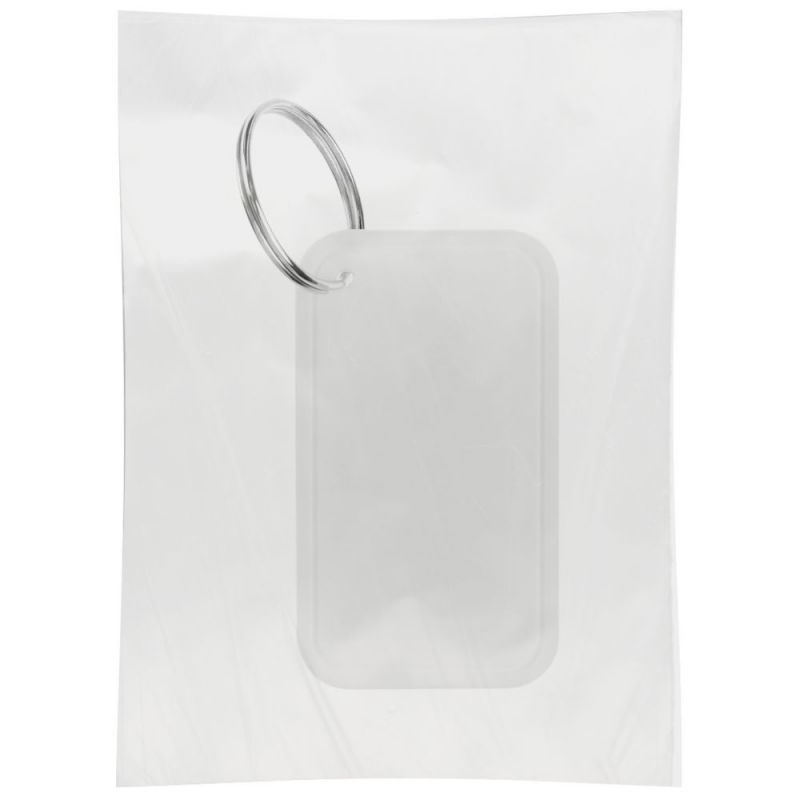 Лаконичный брелок из полипропилена с металлическим кольцом.