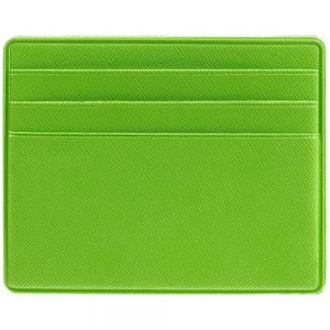 Чехол для карточек из искусственного материала, имитирующего сафьяновую кожу, с шестью отделениями для кредитных карт и одним — для сложенных купюр.