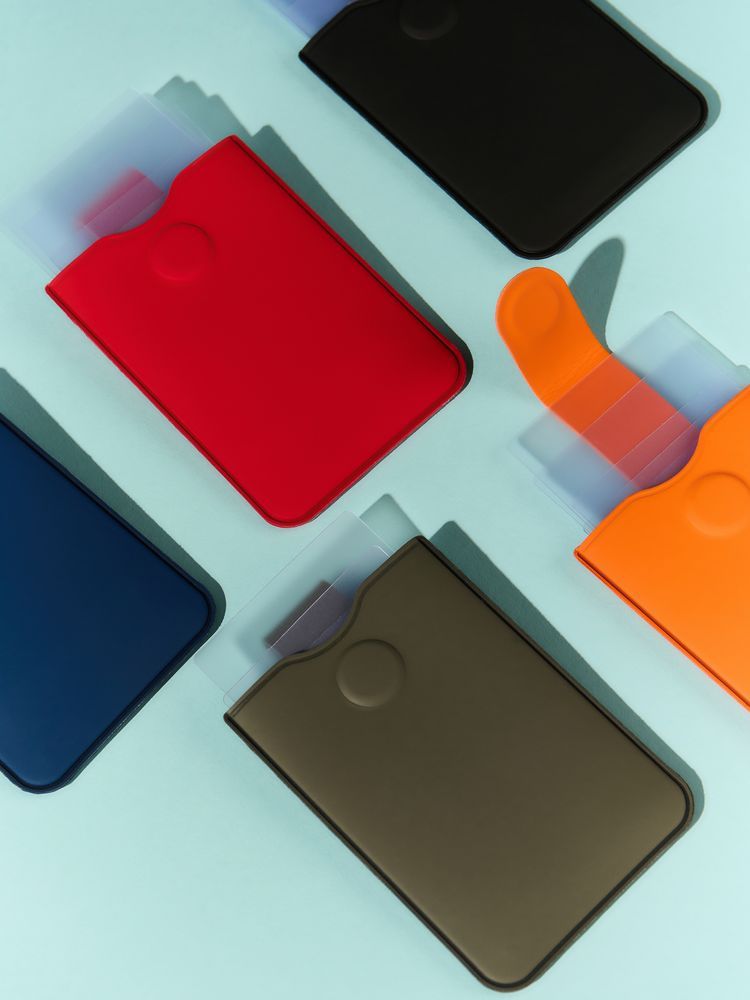 Благодаря выдвижному механизму, потянув за хлястик, можно с легкостью отыскать нужную карту. Магнит на хлястике надежно защитит содержимое.